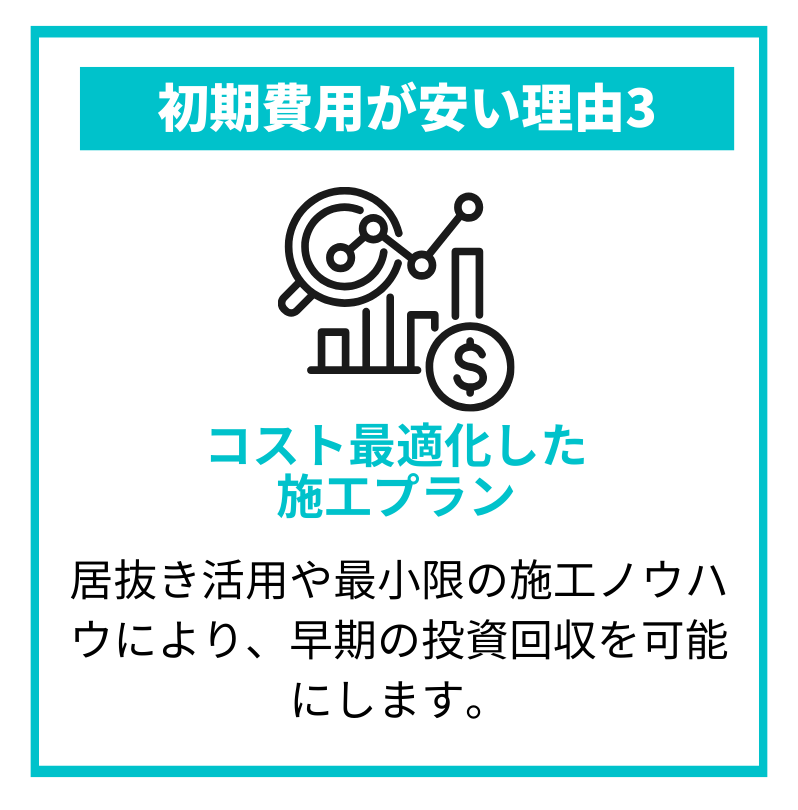 「初期費用が低い」「月間の赤字リスクが低い」「損益分岐点が低い」