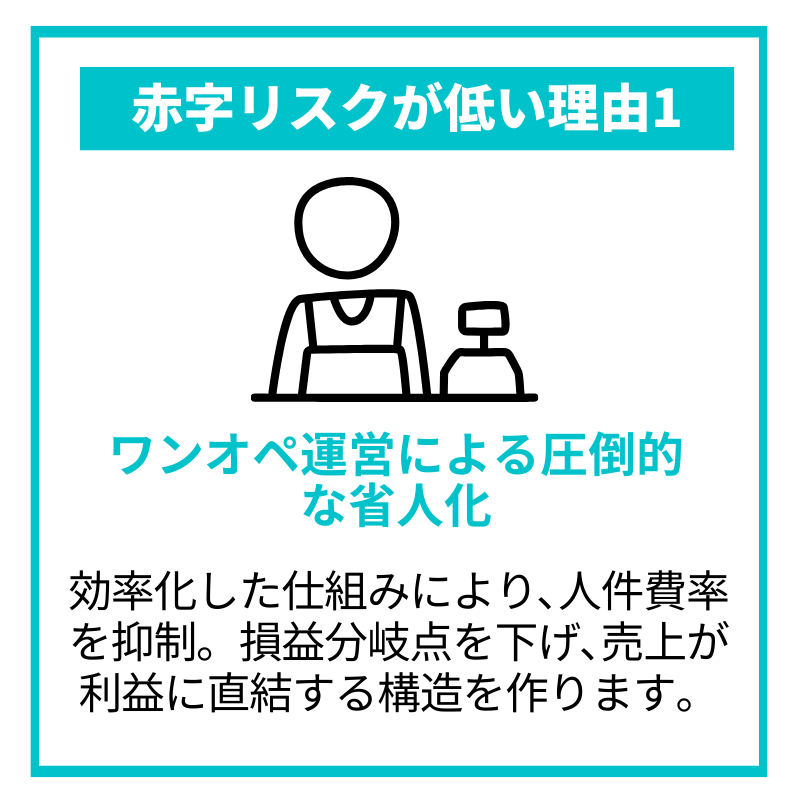ワンオペで回せるので、人件費も抑えられるモデルです。